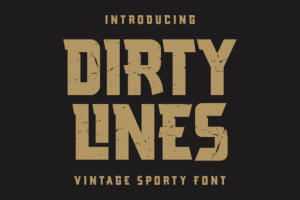 Dirty Lines typeface is a bold, vintage-inspired sporty font that exudes grit, strength, and raw energy. Its distressed texture and sharp cuts channel the spirit of worn jerseys, mud-splattered gear, and the rough-and-ready world of old-school athletics. Drawing inspiration from retro sports typography, Dirty Lines delivers a rugged personality that instantly commands attention.