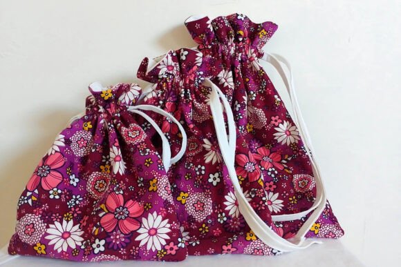 This lined drawstring bag sewing pattern comes in three different sizes: small, medium, and large. It is ideal for DIY gift bags, pouches, or everyday storage bags.