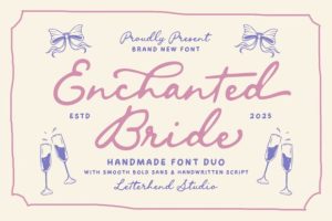Enchanted Bride is a charming handmade font duo that blends a smooth bold sans with an elegant handwritten script. Its graceful curves and soft strokes create a romantic, timeless feel—perfect for invitations, branding, stationery, and any project that celebrates love and beauty. The duo pairing offers balance between sophistication and warmth, giving every design a touch of elegance and enchantment that feels both modern and heartfelt.