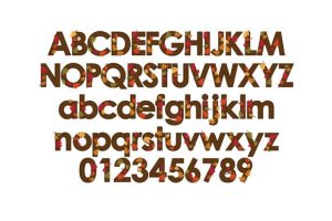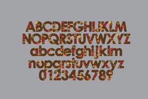 This full-color font features sans serif lettering with autumn leaves.