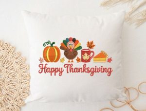 Happy Thanksgiving Turkey and Pie Embroidery – 5 Sizes