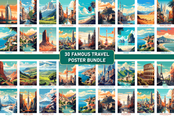 Travel Posters Bundle | Retro Aesthetic | Vintage Travel Wall Art | Aesthetic Wall Collage | Travel Wall Prints | Room Decor | Home Decor | Vintage Posters |