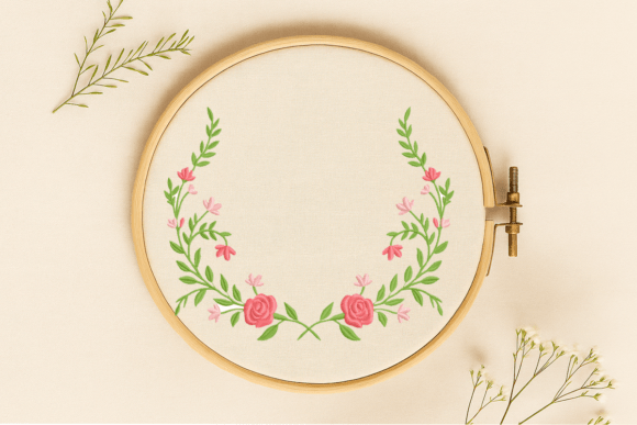 Floral Embroidery Frame Design Roses