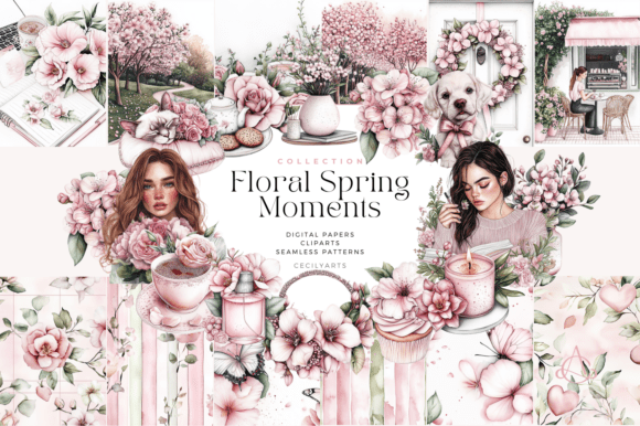 Bring your springtime visions to life with the Floral Spring Moments collection – a dreamy bundle of watercolor clipart, seamless patterns, and digital papers made for creatives, crafters, and small biz owners!