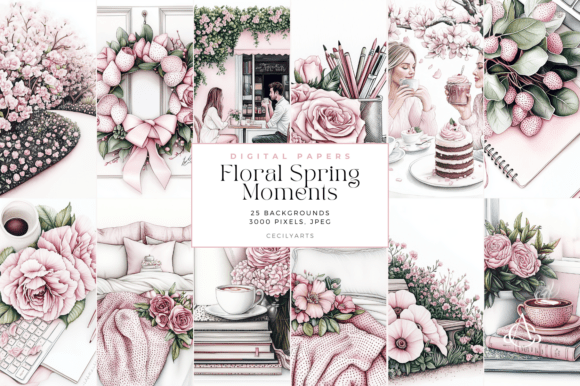 🌿 25 Digital Papers – cozy spring scenes, 3000px, JPEG