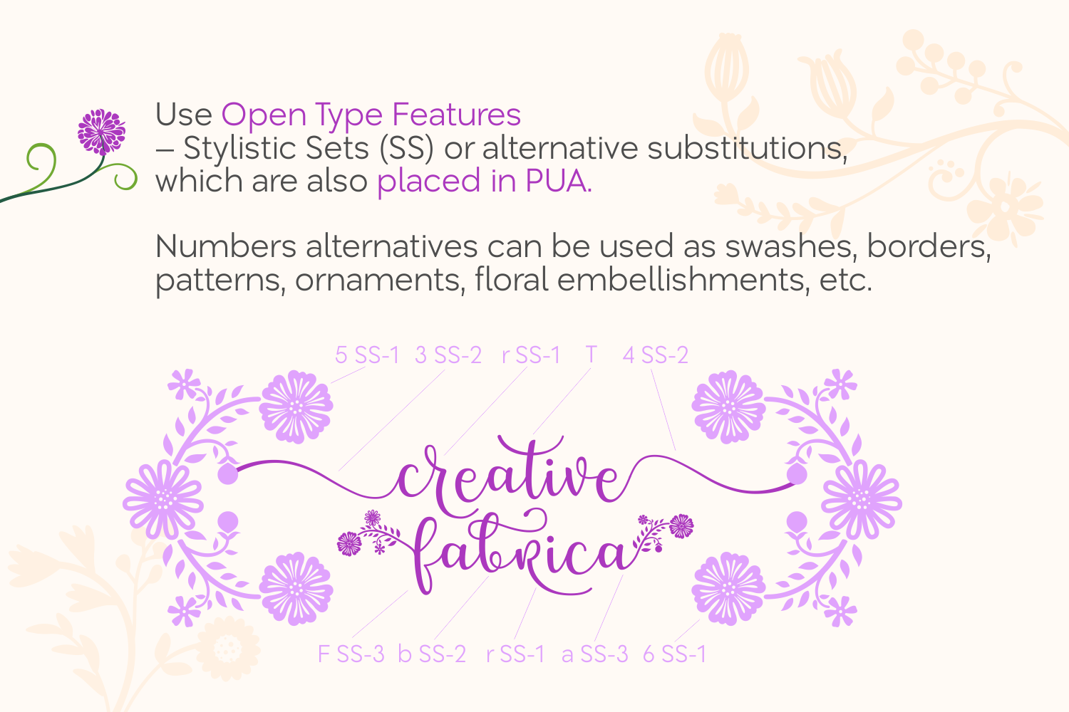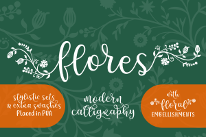 Flores is a modern calligraphy font packed with beautiful floral swashes. Because these swashes are integrated in the font, it looks and feels very natural.