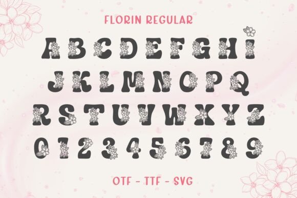 Florin is a playful, floral decorative font that comes in both regular and outline styles. With its colorful gradient styling and embedded flower illustrations, Florin is perfect for eye-catching headers, children’s projects, seasonal greeting cards, and branding with a youthful twist.