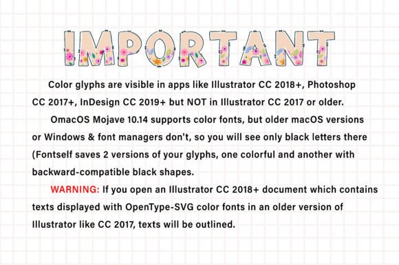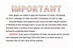 Note! This product is a color font (Opentype-SVG) and is compatible with PhotoShop, Illustrator, Silhouette, and Inkscape. The OTF and/or TTF files of this product are not compatible with Cricut. For more information on how to use this type of font please check our Ultimate Font Guide.