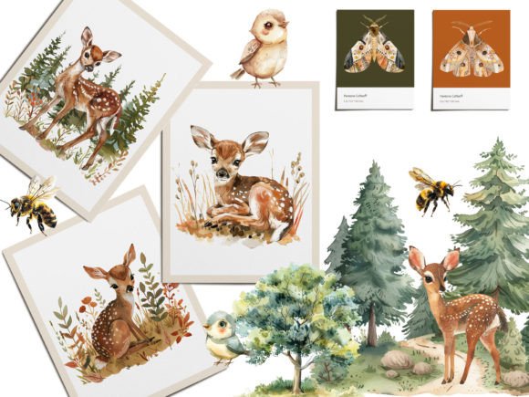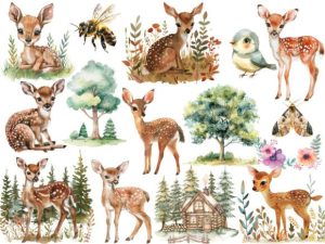 This collection includes: 32 elements, deer painting, deer watercolor, deer clipart, deer art print, baby animals clipart, woodland animals, deer watercolor png, deer nursery, deer sticker, forest baby shower, baby forest animals, fairy clipart, kawaii clipart, wildflower clipart, spring clipart,Moth clipart,Bird clipart,forest animals clipart,baby deer clipart,Watercolor Deer,