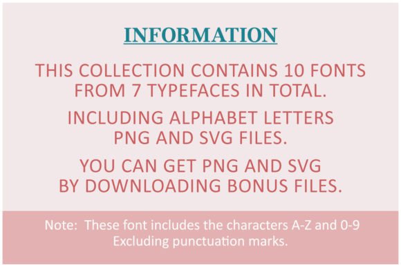 10 OTF Fonts include Bonus files (SVG and PNG Files graphics).