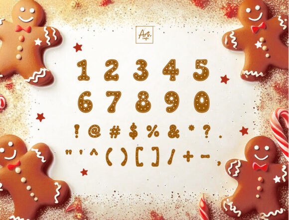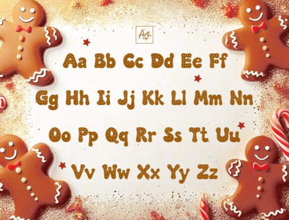 Introducing Gingerbread Man, a creative and lively font that pulls inspiration from our favorite retro influences. The entire design is reminiscent of the enchanting world of freshly cooked Gingerbread cookies, perfectly embodied in the delightful dotted lines and captivating bow detail. Rising above simple aesthetics, Gingerbread Man is the quintessential festive design tool, encapsulating the very essence of Christmas celebrations. Furthermore, the font’s light-hearted nature lends itself generously to children’s projects. Whether it’s for holiday-themed messages or enchanting storybooks, Gingerbread Man is expertly crafted to infuse an essential warmth and joy into your memorable designs.