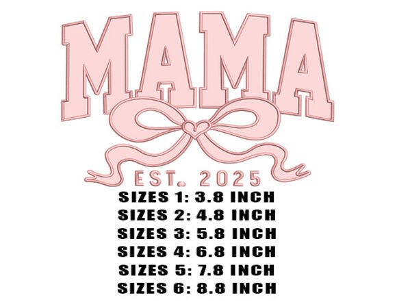 Chic and modern embroidery design with bold “MAMA” lettering and sweet bow accent—perfect for new moms and baby shower gifts. This machine embroidery design comes with multiple embroidery file formats and can be used with multiple embroidery machines.