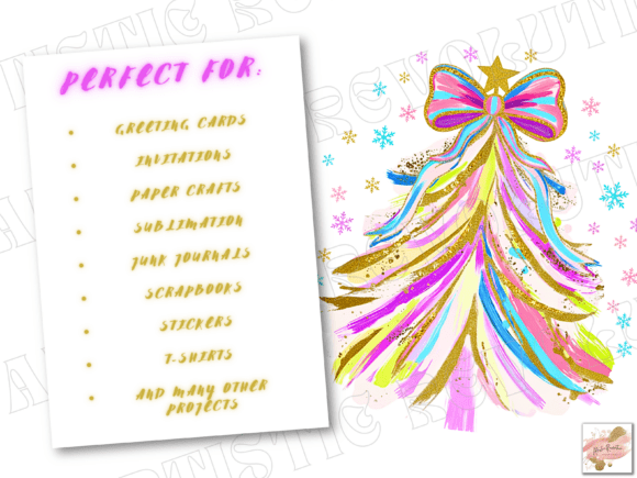 Colorful Coquette Christmas Tree Png, Preppy Christmas Png, Pink Glitter Brushstroke Christmas Png, Christmas Tree Shirt Design Sublimation