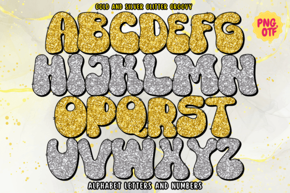 Unleash a dazzling touch of glamour with Gold and Silver Glitter Groovy, a font that effortlessly blends retro vibes with a sparkling finish. This typeface combines the chic, free-spirited essence of groovy design with the luxurious shine of gold and silver glitter, making it the perfect choice for any project that calls for a bit of celebration and flair. Ideal for graphic designs, party invitations, posters, and all sorts of festive occasions, Gold and Silver Glitter Groovy adds a touch of elegance and fun to your work. Whether you’re creating event flyers, holiday cards, or decorative elements, this font will make your designs shimmer and shine with its eye-catching sparkle. Embrace the glitz and glam with Gold and Silver Glitter Groovy and elevate your creative projects to a new level of brilliance!