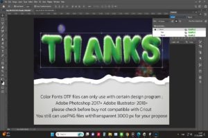 Note! This product is a color font (Opentype-SVG) and is compatible with PhotoShop, Illustrator, Silhouette, and Inkscape. The OTF and/or TTF files of this product are not compatible with Cricut. For more information on how to use this type of font please check our Ultimate Font Guide.
