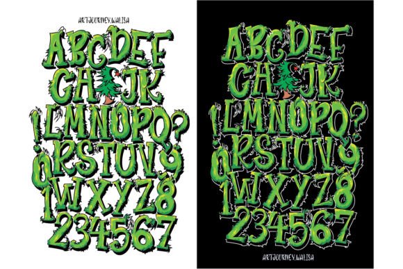 Grinchmas Christmas-themed hand Drawn Alphabet design with green Grinch letters, and Christmas elements. Perfect for horror party invitations, t-shirt designs, stickers, and digital art projects. Unique bold color font style for December Happy season lovers.