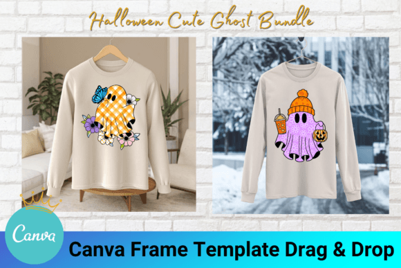 Halloween Cute Ghost Canva Frame Bundle