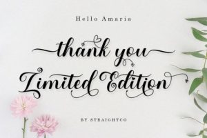 Hello Amaria is a modern calligraphy design. This font is casual and pretty with a stroke. It can be used for various purposes. such as logos, product packaging, wedding invitations, branding, headlines, signage, labels, signatures, book covers, posters, quotes, and many more.