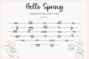 Hello Spring is a lovely and timeless handwritten font. It is the best choice for creating eye catching logos, branding and quotes. Hello Spring is PUA encoded which means you can access all of the glyphs and swashes with ease!