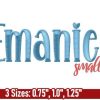 Add a stylish and modern flair to your embroidery projects with this sleek script font. Perfect for personalizing clothing, accessories, or home décor, its flowing script design adds elegance and charm to monograms, quotes, and decorative details. The listed sizes refer to the approximate height of uppercase letters, though adjustments may be needed depending on your specific project and machine settings.