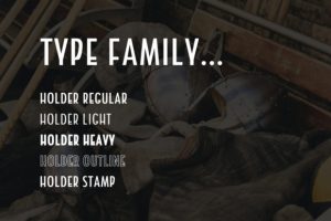 The Holder is a fresh sans-serif font family, inspired by covers from old books. It is perfect when used for displaying, website, branding, logos, magazines, posters, and films. There are five fonts included in both TTF and OTF formats: Regular, Light Heavy, Outline and Stamp.