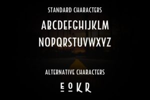 NOTE: This is an all caps font. To access the alternative characters, you can use the lower case letters for E, K, O, and R.