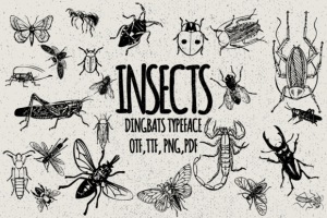 Insects is a unique and highly detailed dingbats font, designed to help you generate 62 glyphs for your project, by typing capital letters, small letters and numbers.