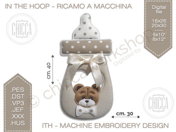 ITH Baby Bottle Teddy Bear Garland is an adorable and charming in-the-hoop (ITH) machine embroidery design that combines the elements of a baby bottle and teddy bears to create a delightful garland. Create a whimsical and adorable garland to hang in a baby’s nursery, adding a touch of cuteness and charm to the room.