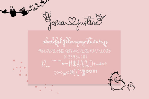 Jesica Justine consists of two fonts designed to complement each other perfectly. Together or apart, these fonts are ideal for adding a chic and cheery touch to your crafts. Jesica Justine is PUA encoded which means you can access all glyphs and swashes with ease!