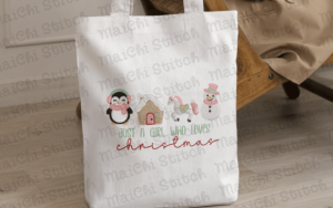 Celebrate your love for the holiday season with this adorable “Just a Girl Who Loves Christmas” embroidery design 🎄✨