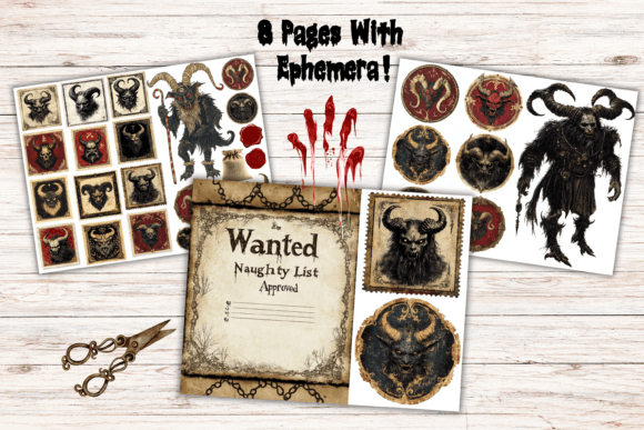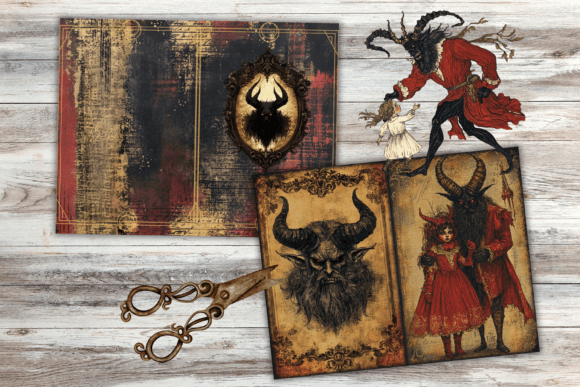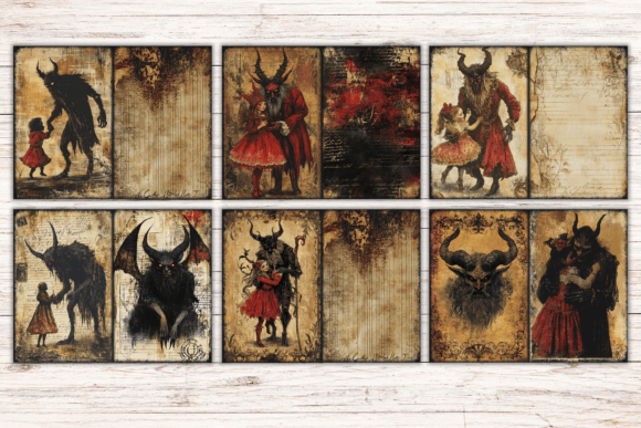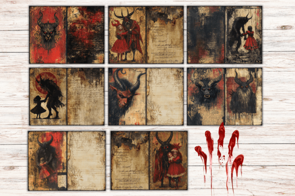 Embrace the dark side of the holiday season with the Krampus Horror Junk Journal Kit. This terrifying collection of 19 grimly illustrated junk journal pages, a haunting book cover, and 8 sinister ephemera sheets (all in high-resolution JPG format, 8.5 x 11 inches) brings the folklore of Krampus to life. Perfect for those who revel in the macabre, this kit transforms your creative projects with the eerie presence of Krampus and his twisted holiday cheer.