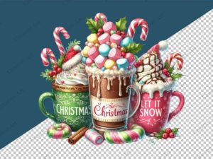 Watercolor Let It Snow Christmas Coffee Png