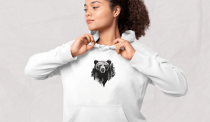 Majestic Bear in Forest Embroidery Design. Powerful bear silhouette set in a detailed forest scene, perfect for nature lovers, rustic decor, and outdoor adventure projects.