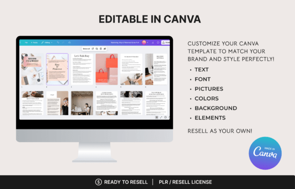 Learn how to make money on Etsy and Pinterest with this editable eBook (made in Canva) that comes with PLR (Private Label Rights), so you can customize it and resell it as your own.
