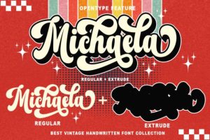 Michaela Display Duo is delightfully nostalgic and delivers a great display font. Use this display font to add a special retro touch to any design idea you can think of! Expertly designed to be a true favorite, this font has the potential to take your every creative idea to the next level!