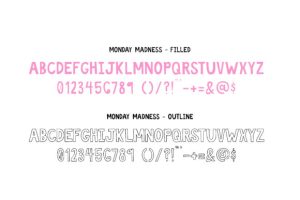 Monday Madness is a cute and colorful display font. It embodies playfulness and authenticity and is the perfect choice for any children activity or school project.
