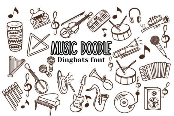 Music Doodle is a fun dingbats font with a musical theme. This font can enhance your creative projects such as wedding invitations, DIY, crafts, decorations, logos, and many other creative ideas.