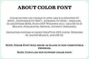 Note! The color version of this font is only compatible with certain design programs incl. PhotoShop, Illustrator, Silhouette, and Inkscape. The OTF and/or TTF files of the color version are not compatible with Cricut. For more information on how to use this type of font please check our Ultimate Font Guide.