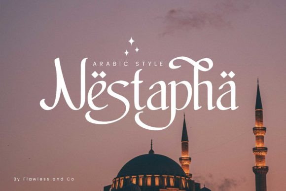 Nestapha is an elegant Arabic-style font that is perfect for a variety of design applications, for example, those related to Ramadan. With its flowing curves and distinctive letterforms, Nestapha adds a touch of sophistication to any project, while also conveying a sense of cultural richness and spiritual depth.