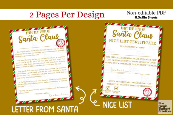 This set comes with a Santa letter on official letterhead, and matching a Nice List Certificate.