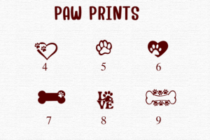 Paw Prints is a lovable dingbats font featuring a variety of paw shapes, hearts, and animal footprint combinations. Great for pet lovers, vet clinics, animal rescue graphics, and DIY craft projects, this font makes it easy to add paw-some charm to your designs.