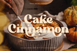 Peach Melon font will be great for any branding project. A lot of alternatives and ligatures will help you to create a unique and original logo design or website header! Trendy, groovy, crazy & retro-style serif font for your fancy projects.