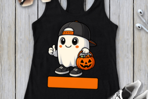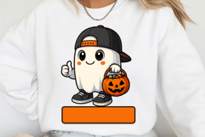 Make Halloween extra fun with this Personalized Boo Ghost Halloween PNG! Featuring an adorable cartoon ghost in sneakers and a cap, holding a pumpkin candy bucket, this design comes with a blank orange nameplate—perfect for adding custom text or names. Great for kids’ Halloween shirts, trick-or-treat bags, party decor, and more.