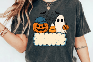 Add a playful touch to your Halloween projects with this Personalized Kids Ghost Pumpkin Halloween Boy PNG. Featuring a cute ghost, pumpkin with a cap, candy corn, and a blank label space, this design is perfect for customization. Add your child’s name, spooky phrases, or fun messages to make it truly unique.