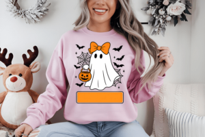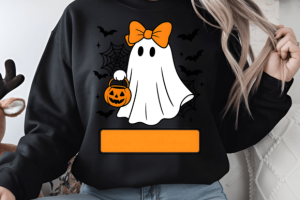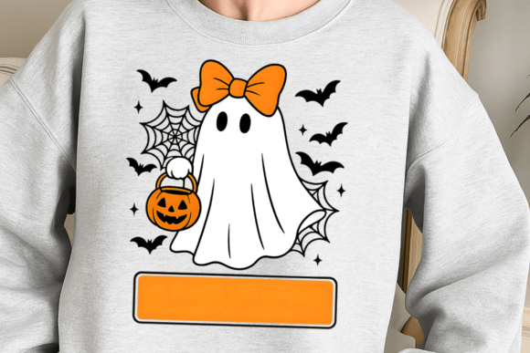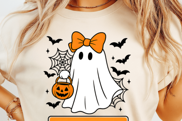 This design is perfect for crafters, print-on-demand sellers, and DIY lovers looking for a cute, kid-approved Halloween ghost with a girly touch. 💖