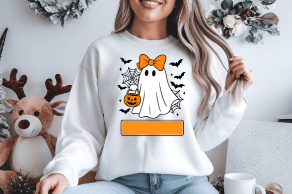 Bring a touch of sweetness to spooky season with this Personalized Girl Halloween Ghost PNG! 🎃👻 Featuring an adorable ghost with a big orange bow and pumpkin candy bucket, this design is perfect for creating custom Halloween projects.