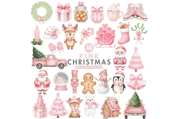 Bring soft holiday magic and hand-painted watercolor charm to your projects with this Pink Christmas Clipart collection. This festive set includes 40 detailed pieces featuring pink Santa, cute reindeer, pastel ornaments, gingerbread cookies, blush trees, and cozy holiday decor. Each illustration is painted in delicate watercolor tones, perfect for girly Christmas crafts, kids’ holiday invitations, greeting cards, and festive winter designs. These high-quality PNGs make it easy to create elegant, whimsical, and modern Christmas artwork.