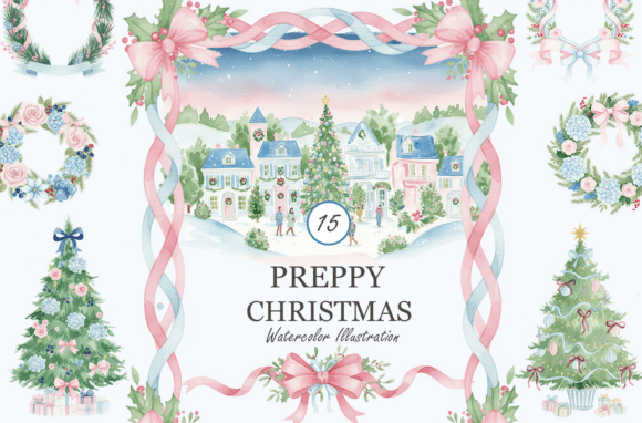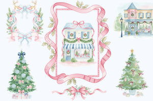 This collection features charming Preppy Christmas clipart with a festive grandmillennial style. From preppy Santa to chinoiserie-inspired holiday decor, these hand-painted illustrations combine vintage Christmas nostalgia with chic seasonal aesthetics. Perfect for stylish Christmas designs, DIY crafts, and cozy holiday projects.