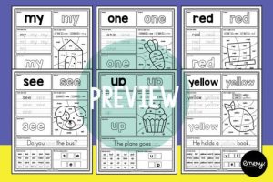 These sight word worksheets for preschool help young learners practice words listed in the Pre-Primer Dolch Sight Word list.