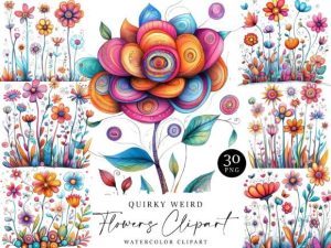 πΈ 30 Quirky Weird Flower Watercolor Clipart Elements